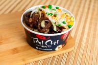 Porção de carne com arroz chop suey, embalagem de 550ml. (Imagem ilustrativa)