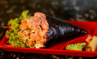 Temaki recheado com o sabor a sua escolha, podendo ser cru ou frito.