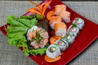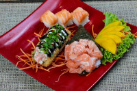 1 Temaki a sua escolha, 5 Uramaki de Salmão e 4 Truck de Kani e Salmão.